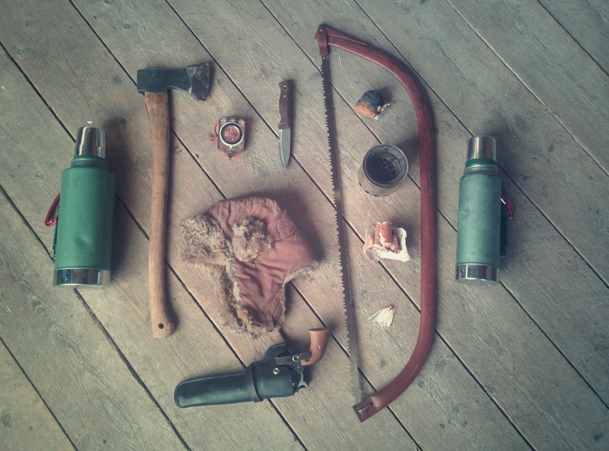 • Cheap and dirty: buy an axe head or broken axe at a garage sale ($5+) or eBay, then put on a new hickory handle (available at hardware stores for about $12). Or, find a small tree/branch that looks like an axe handle and use the knife you chose above to make it look more like a handle (free).