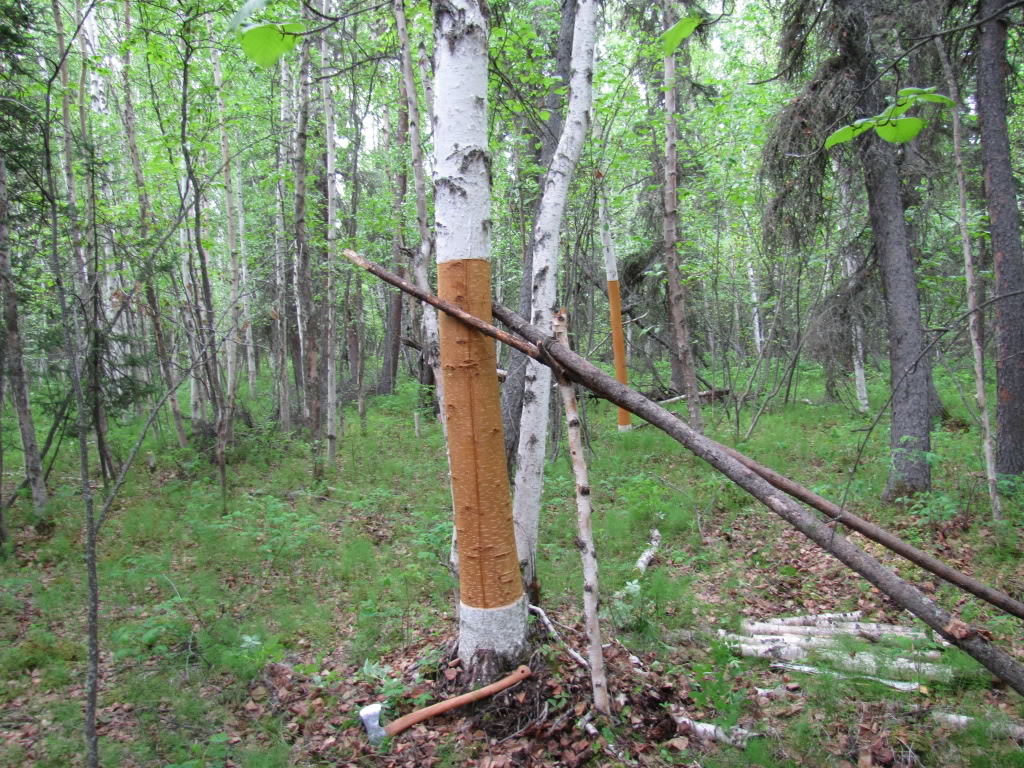 Birch bark: We gathered both live and dead bark in three foot panels. The dead bark was for padding the live bark