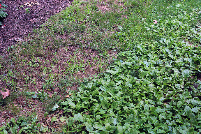 What we’ve ended up seeing is a succession. That area around the property line shot was basically just English Ivy when we moved in, going towards the back of the house where basically nothing grew. The plantain has taken over on its own just by having been given the chance.
