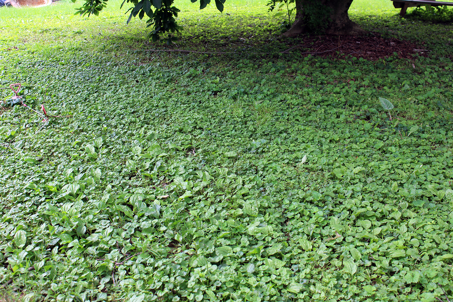 Closer shot of the cover. What you’re seeing is mostly clover and violet with some broad leaf plantain mixed in. Some dock and mulberry as well.