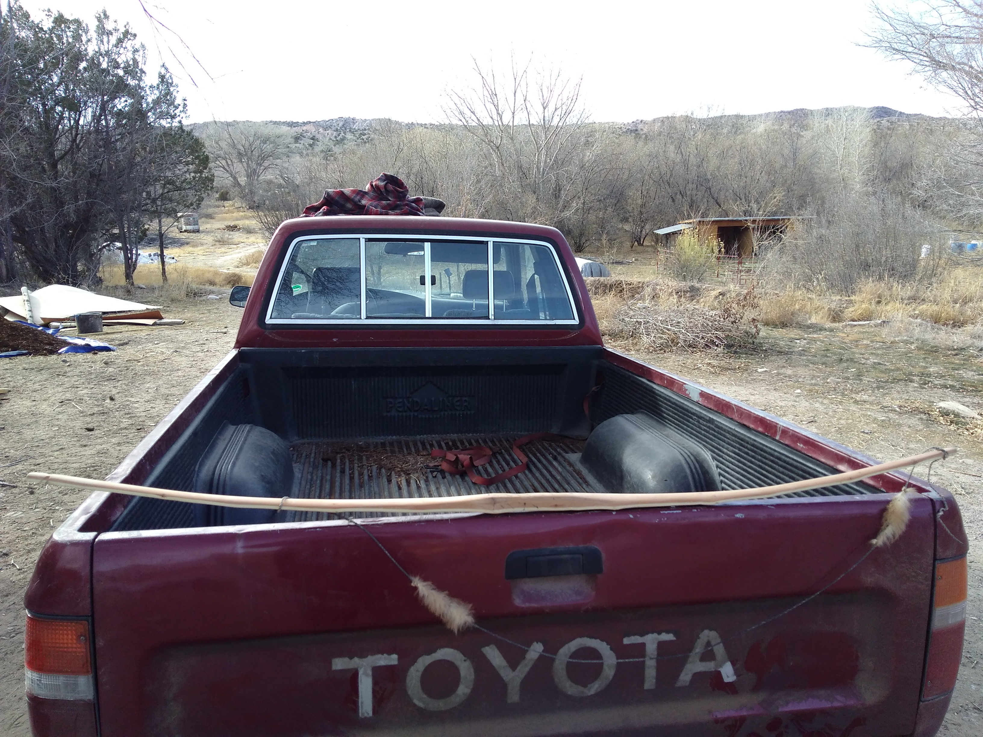 I stole the string from the other yew bow I have temporarily. I’m hoping to take a Sinew bowstring class at Winter Count in about two weeks and make one for this bow. Now I gotta thin this bow down a little more and cut more sinew from Elk legs.