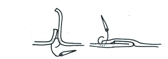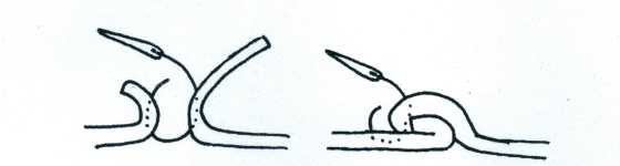 I do know one stitch called the ladder stitch or butt stitch. It is used in making turn shoes and likely other shoes. Below is a “stitchdown” turnshoe that I made. The leather is thick buffalo hide that is so thick (8 oz) that I could sew through the flesh side into the edge of the leather, to another edge and up through the flesh side. This could be called “subcutaneous” sewing as the thread doesn’t show up on the surface of the shoe.