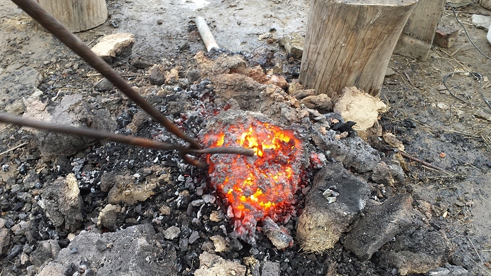 It’s a hard, long and unforgiving task, requiring quite a bit of luck and experience (took a few smelts to even get the bloom to form). Every little detail counts and you can ruin the entire smelt by just a few minutes of carelessness. But theoretically, if you dropped me in the middle of a wilderness, I could make steel from scratch. I’ve done it before and I enjoy very much seeing the dirt and then a molten blob turn into a hard, forgeable material.