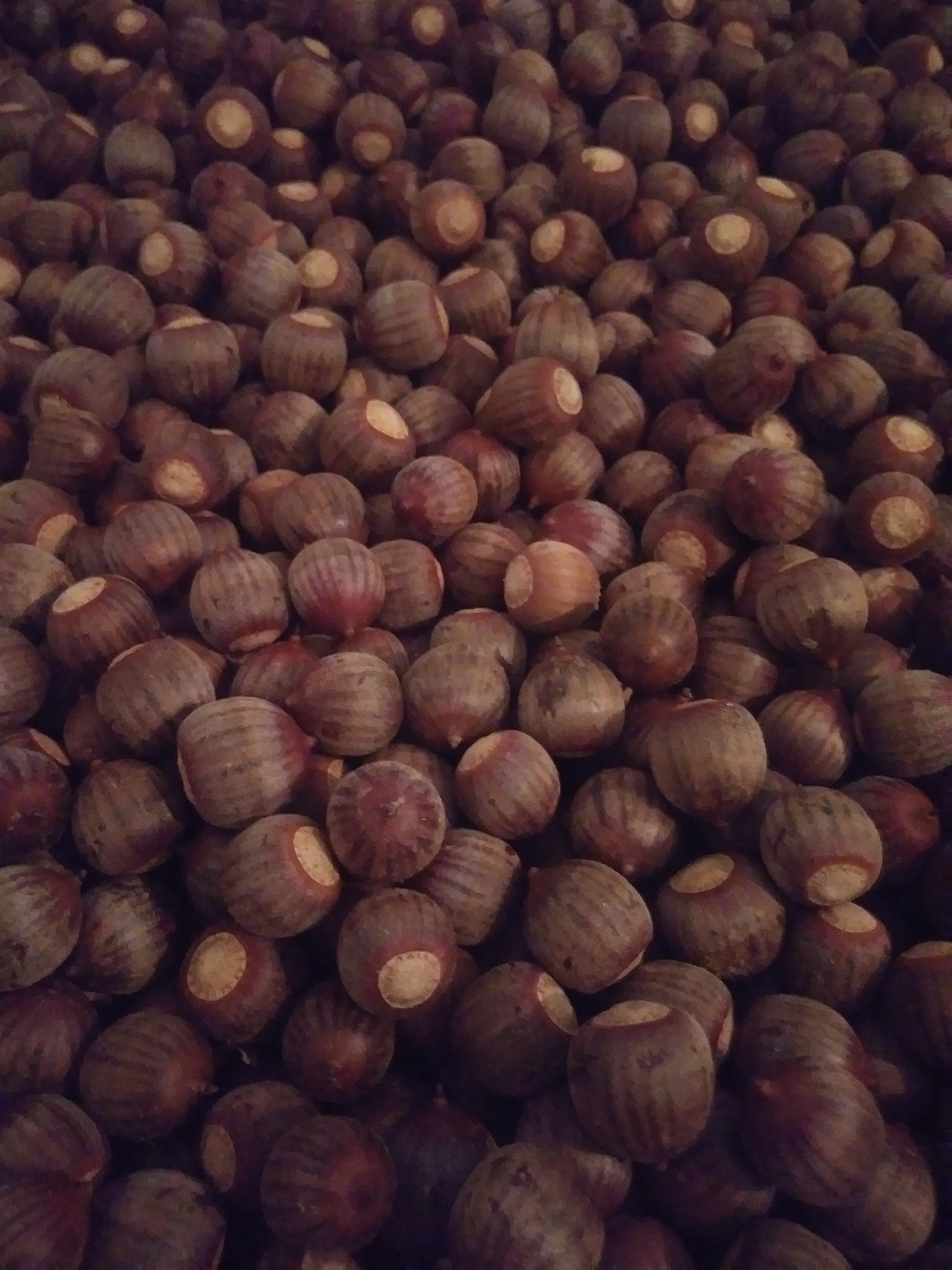 and here are some smaller acorns, about a dime in size, that i suspect are from a northern red oak/black oak hybrid. small, yet so abundant that i could not pass them up. and gladly so. i gathered about 14 pounds in 45 minutes, on my hands and knees: